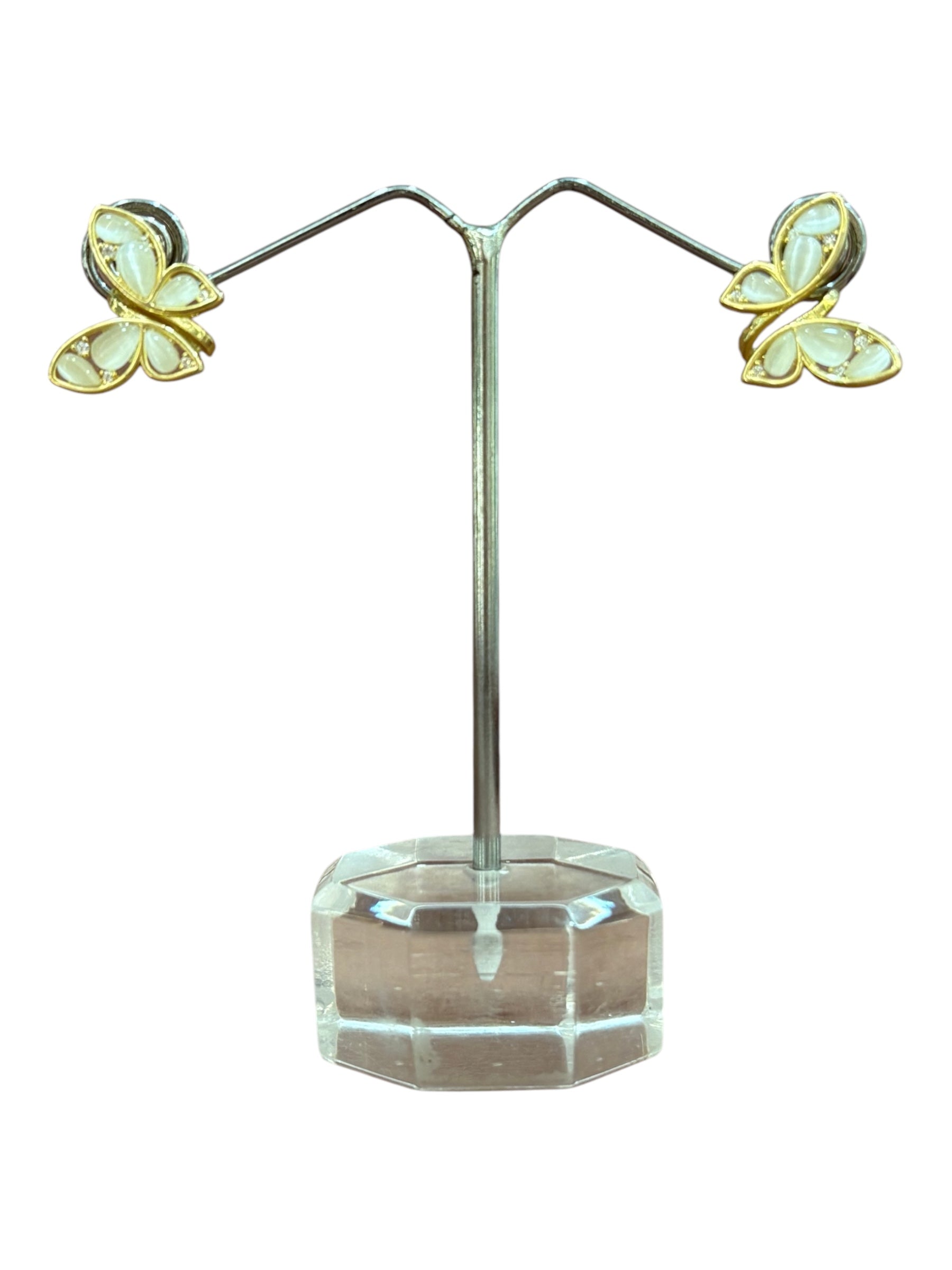 Embrace delicate beauty with these charming butterfly stud earrings. Featuring a graceful butterfly design with pearlescent white stones and fine detailing, these earrings add a touch of elegance to any outfit.